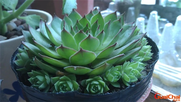 观音莲的养殖方法和注意事项,观音莲图片?观音莲(学名:Sempervivum tectorum L。)是景天科、长生草属多肉植物。莲株型较大且向外张开,稍扁平,直径可达20厘米。茎短且壮,幼株叶子较少。表面无毛光滑或有细微的软毛,通常呈绿色或稍带蓝灰色,光照充足时叶尖呈暗红色至紫红色。叶片呈披针形至倒卵形,顶端有锋利的尖,两面皆有轻微凸面,纤毛呈白色。花杆粗壮,表面具浓密粗糙的白毛,从生长点长出。